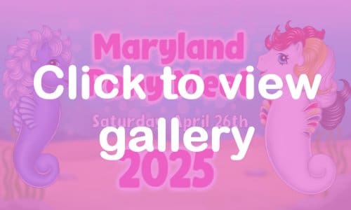 The Maryland Pony Meets were started in 2003 with the meeting of three collectors from the MLP Trading Post. They gathered to share and discuss ponies, have some snacks, and watch shows and commercials from the 80’s–on VHS tapes!